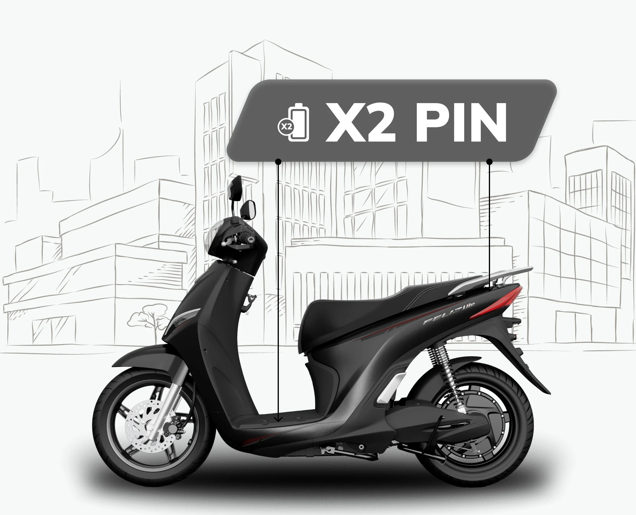 Hệ thống 02 pin LFP tiên tiến với 01 pin cố định dưới sàn xe và 01 pin tháo rời đặt trong cốp.
